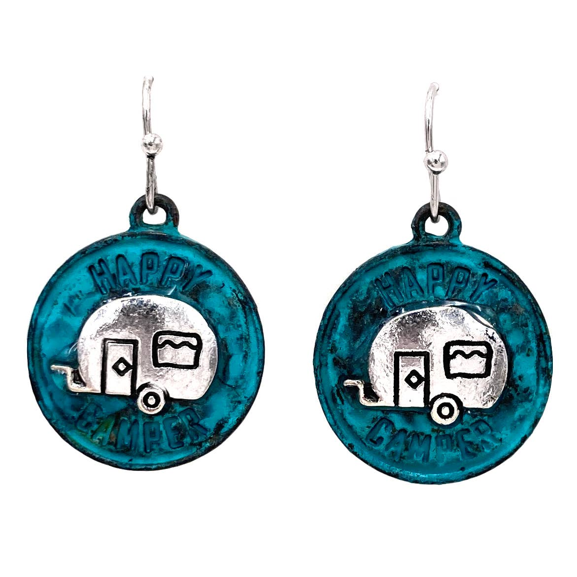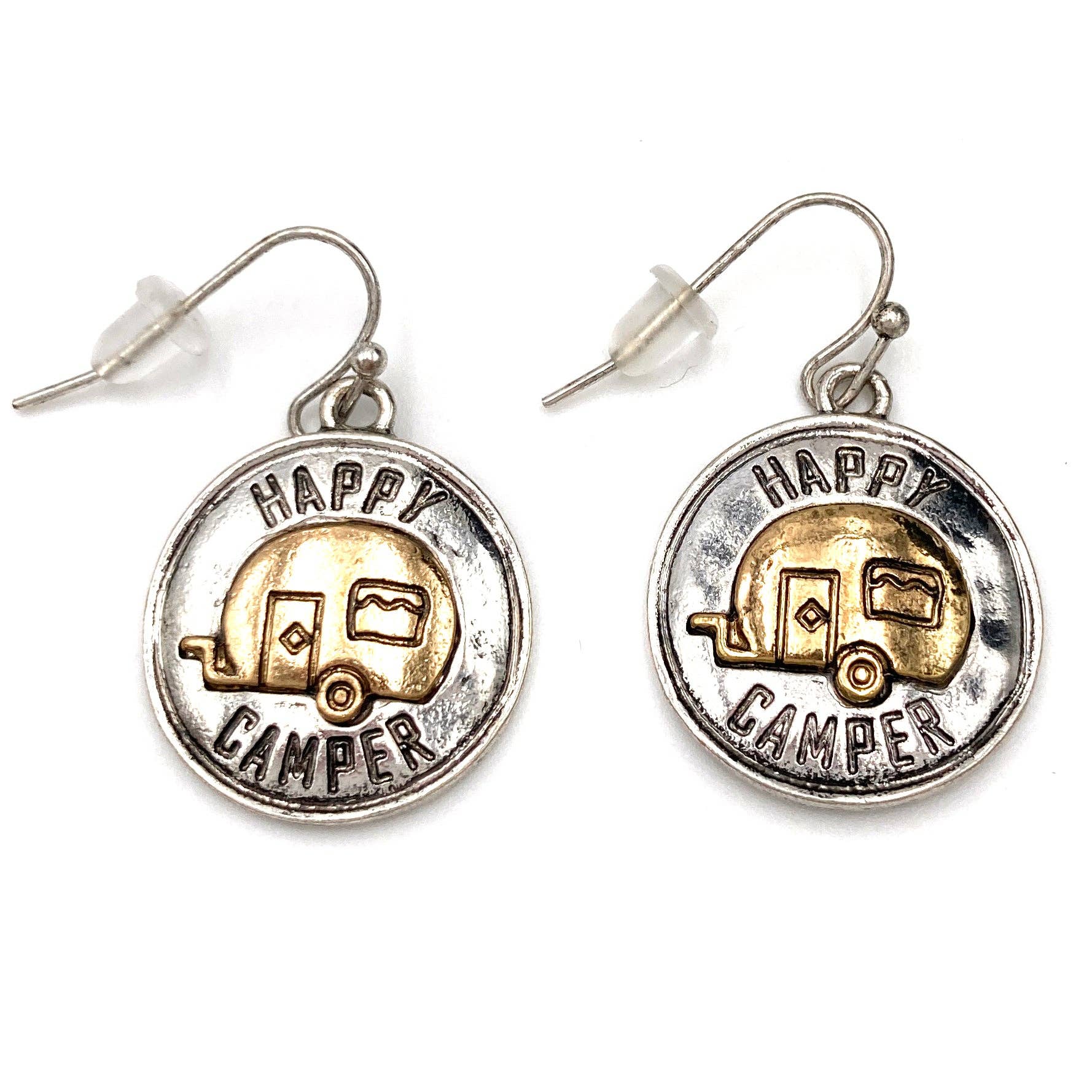 1 inch Long Happy Camper Silver Gold Hook Earrings